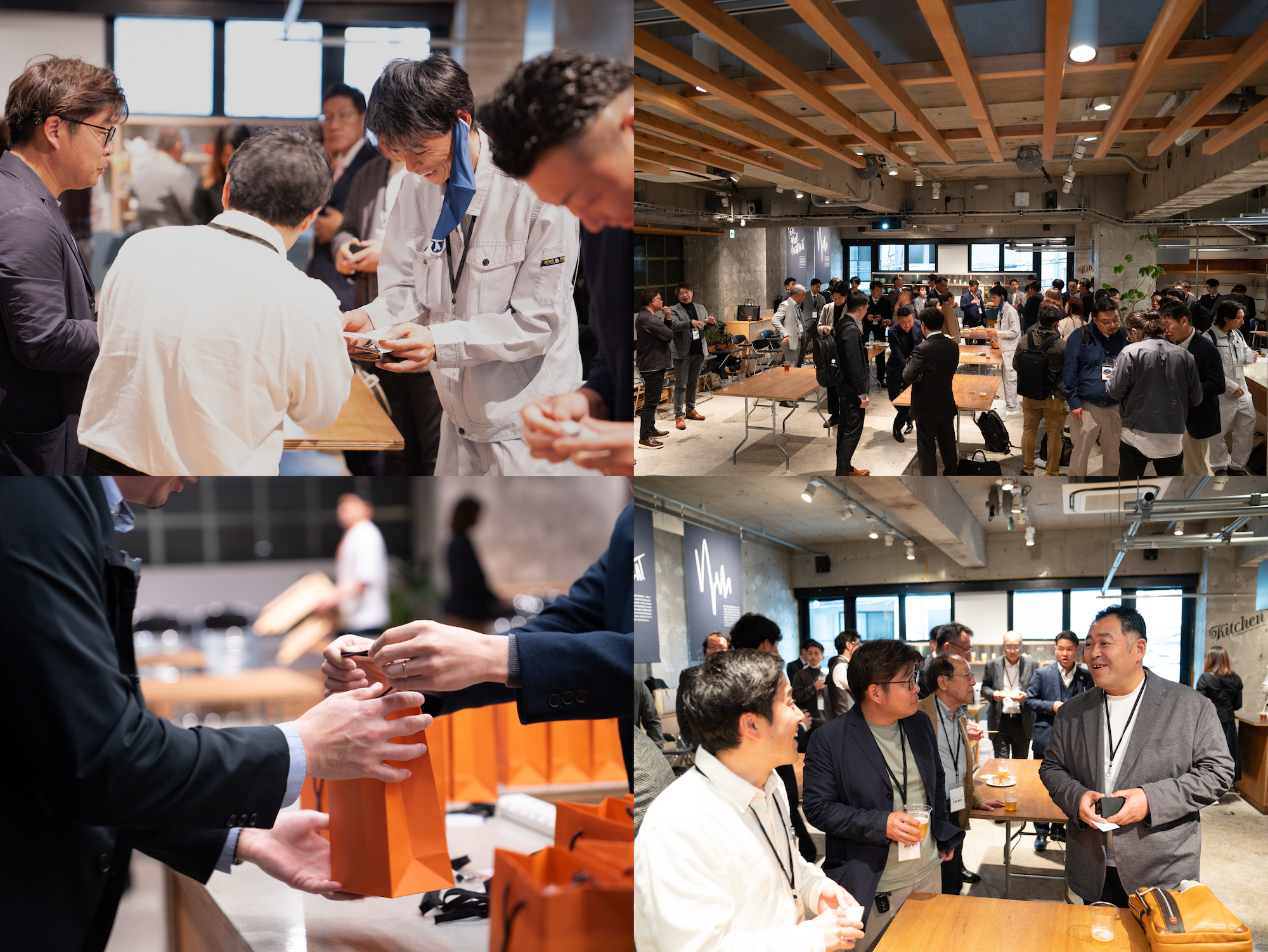 プログラム終了後は、軽食や飲み物を用意し、ユーザー様同士による懇親会を実施しました。商圏や業種などが近いユーザー様の交流が行われ、DroneRooferの活用に関する意見交換はもちろん、協力業者に向けた話し合いが行われるなど、大いに盛り上がりをみせました。