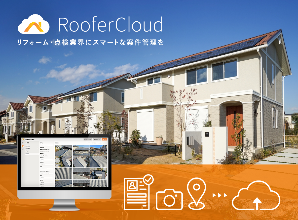 RooferCloudとは、屋根や外装の点検・リフォーム業務をスマートに実現するための、案件管理、積算、報告書作成、見積書作成等が全て簡単に実現できるオールインワンのクラウドアプリケーションです。事務作業の省力化や質の高い提案を実現するだけでなく、業務の分業化・標準化や、データ可視化に基づいた事業判断や施策検討も支援します。また、DroneRooferの案件情報や写真データも自動で反映されるため、DroneRooferを利用した業務の効率を更に向上させることができます。
