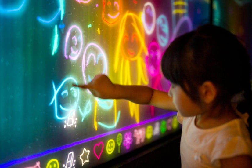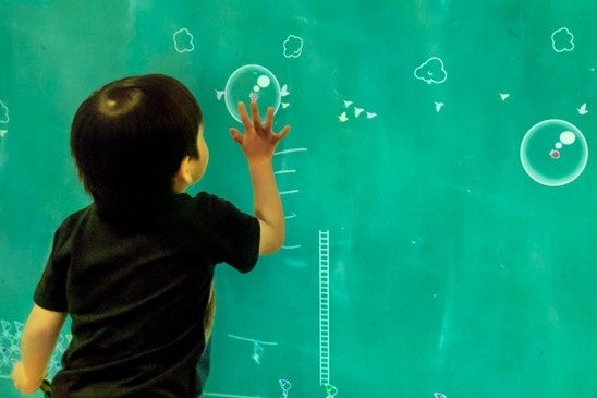 タッチパネルを壁に設置するだけで、創造的な遊びの場が創出され、楽しみながら過ごすことのできる場をつくることができます。