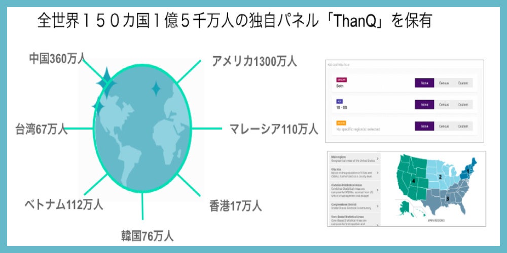 ThanQは日本に関心を持つユーザーを含めた弊社独自の 世界 1.5億人 のパネル調査プラットフォームです。150ヶ国を対象に貴社施設のファンを発見しスピーディーな調査を実現します。