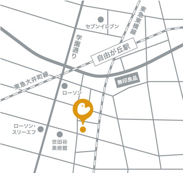 場所:世田谷区奥沢5-31-3メゾン自由ケ丘1F(自由が丘駅より徒歩5分)