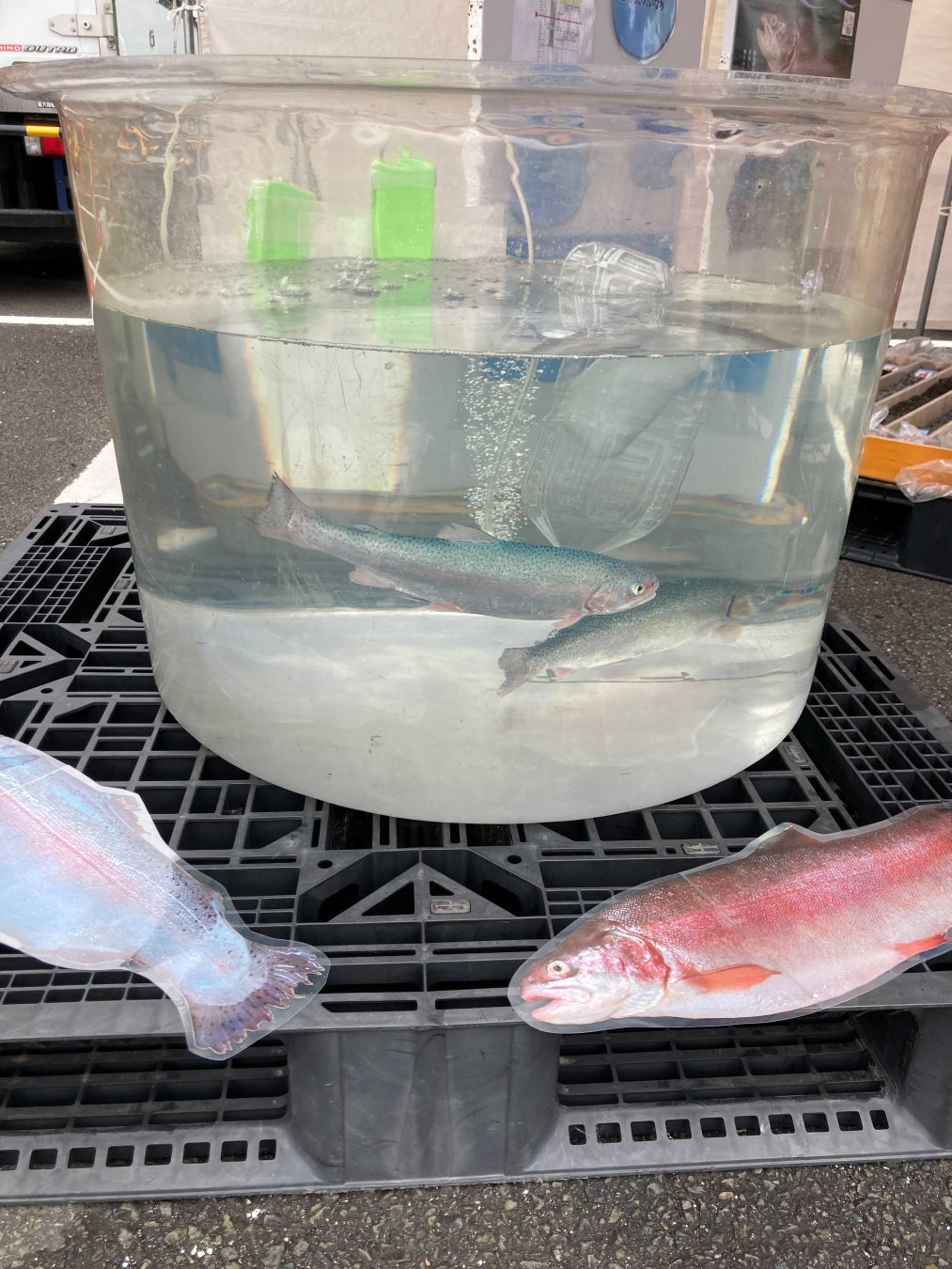 ③魚活ボックスの展示および三保サーモン稚魚の展示