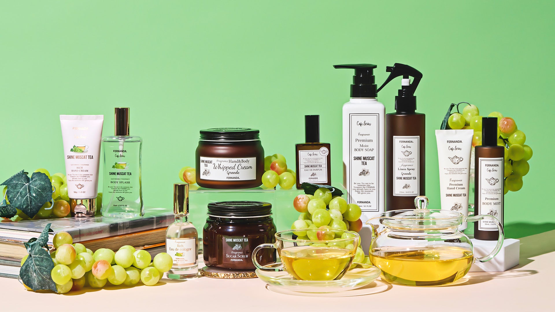 『アールグレイティーコレクション』と『シャインマスカットティーコレクション』のアイテムは、毎日身につけたいオードパルファムやプレミアムハンドクリームに加え、お風呂タイムが楽しみになるプレミアムボディーソープやボディスクラブ、お部屋でいつでも香りを楽しめるリネンスプレーなど幅広くラインナップ。