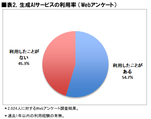 ■ ネットユーザーの54.7%が直近一年以内に生成AIサービスの利用経験あり