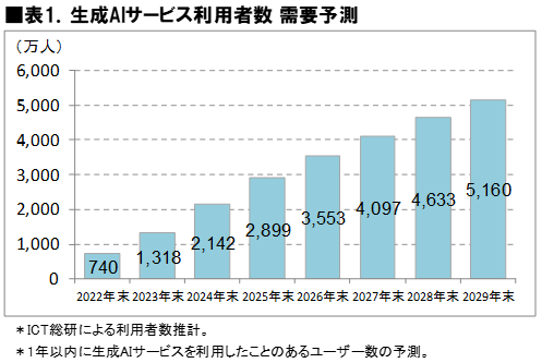 ■ 生成AIサービス利用者は2026年末3,553万人、2029年末に5,160万人へ拡大