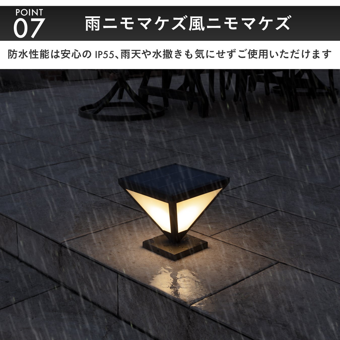 No. 20 には「自動省エネ機能」を搭載。単結晶ソーラーパネルによる優れた充電効率と組み合わせて、くもり空でも長時間の発光を可能にしています。