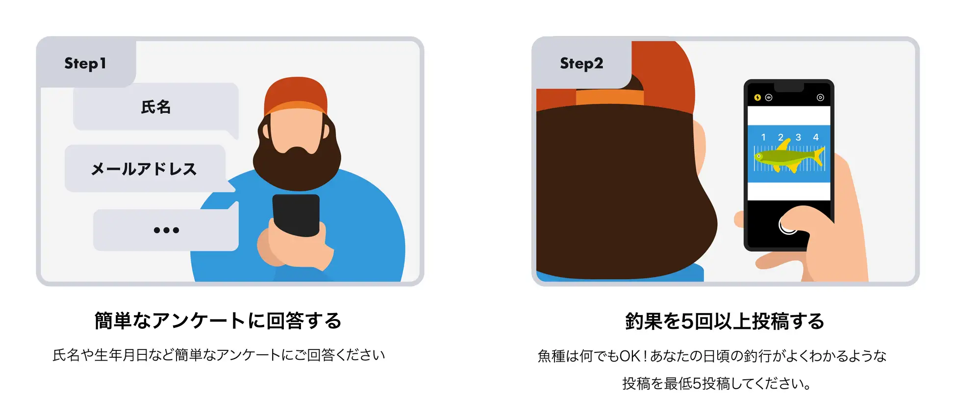 公認ユーザーとして、サービス内で釣り活動の内容を積極的に発信していただきます。