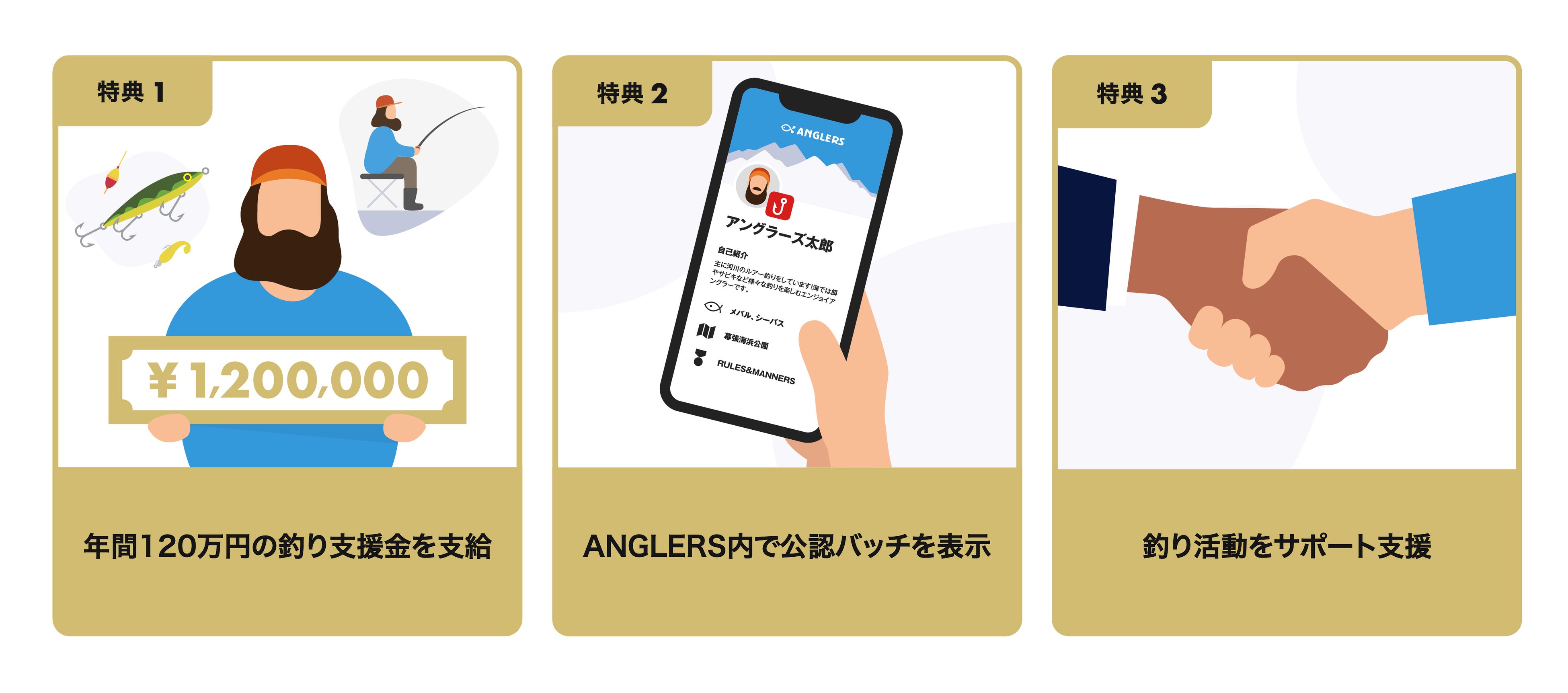 「アングラーズマイスター」は、もっと釣り業界を盛り上げたい、もっと釣りの楽しさを伝えたい釣り人を対象に、スポンサーシップ制度を展開するプログラムです。見事選ばれた方には、ANGLERS公認の釣り人“アングラーズマイスター”として、年間120万円の活動費支給の他、様々なイベントへの参加やメディアへの出演などを通して、釣り業界を私たちと一緒に盛り上げていただきます。