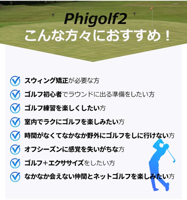 - あなたの居る場所がゴルフ場になる。家庭用モバイルゴルフシミュレーター「Phigolf2」