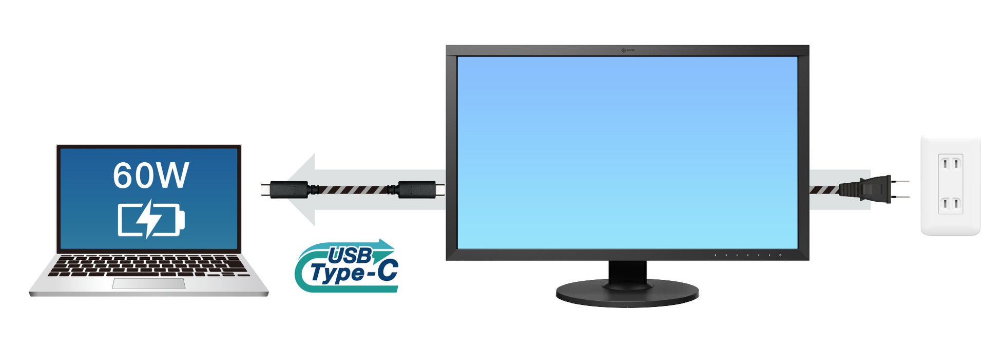 ■USB Type-C®を搭載し、ケーブル1本でノートPC接続・60W給電が可能