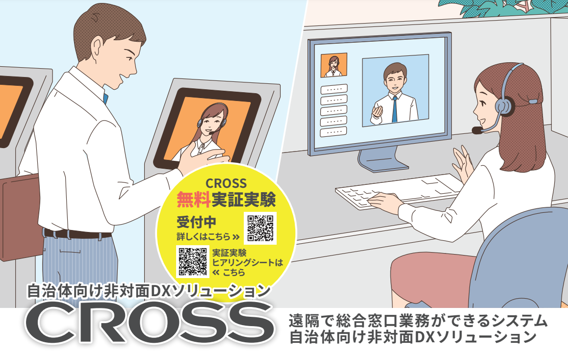 CROSSは支所などで行われていた窓口対応を、本庁やコールセンターなどに集約して遠隔で対応することで、人員配置のアンバランスを解消し、対応に差が出ていた窓口業務の問題を解決するシステムです。