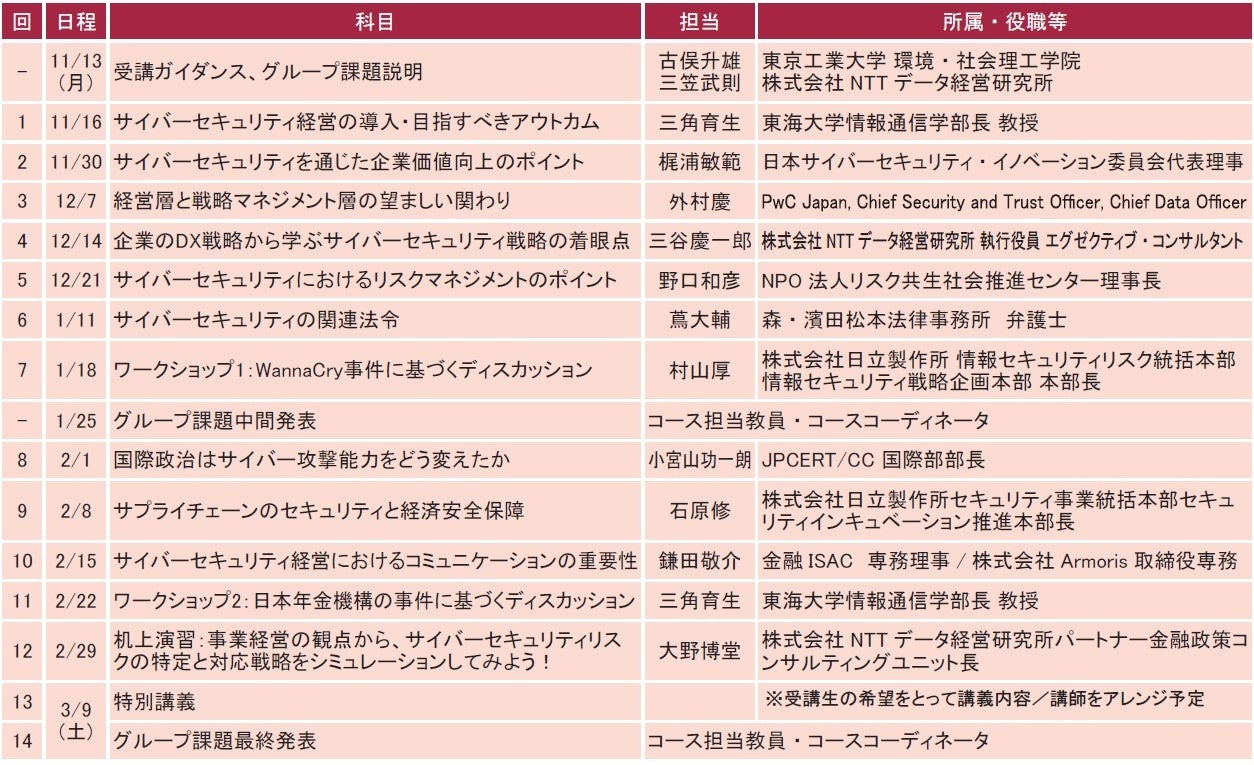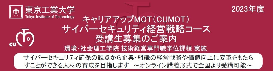東京⼯業⼤学 社会⼈向けMOT(技術経営)プログラム「サイバーセキュリティ経営戦略コース(全14回)」が11⽉に開講!