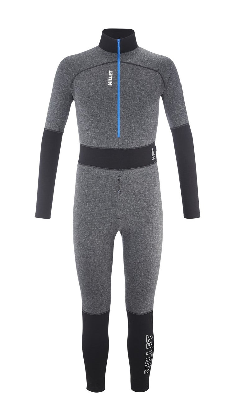 2種類のウール混紡素材を適所に配置し、温かく動きやすいワンピース型ベースレイヤー