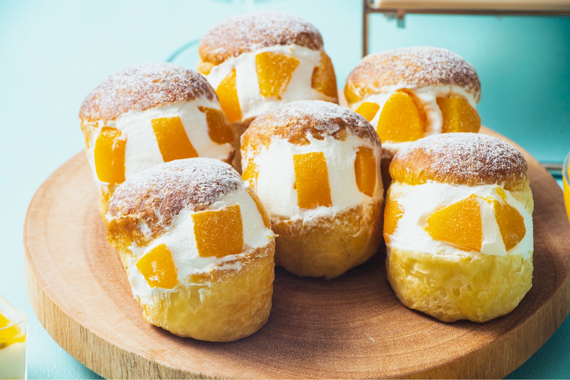 イタリア発祥のマリトッツォで通常使用されるブリオッシュ生地に代わり、自家製のデニッシュを使用したオリジナルマンゴートッツォ。沖縄県産のマンゴー、マンゴー風味のクリームと自家製デニッシュの組み合わせの妙がやみつきになること間違いなしです。