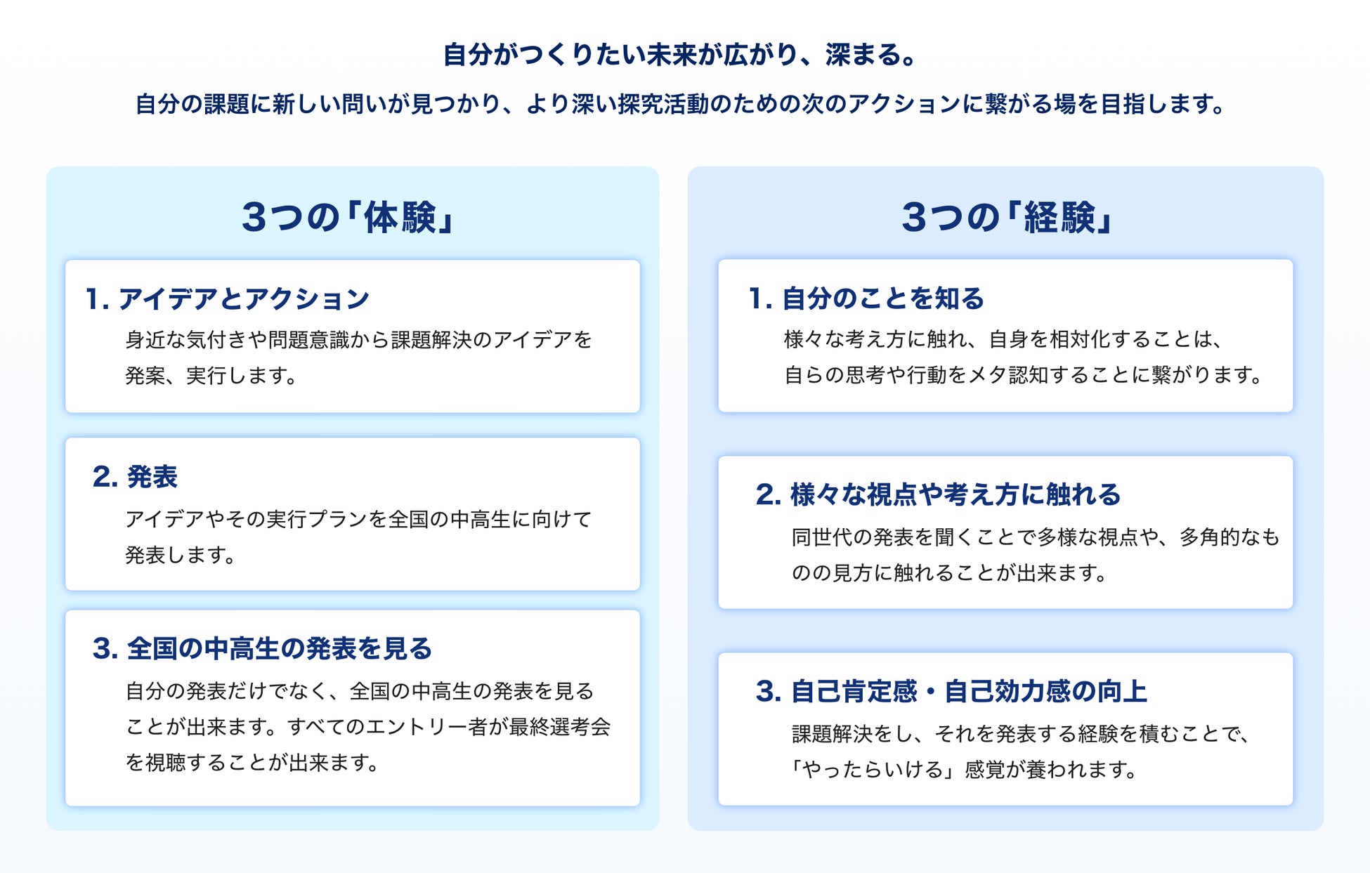 また、参加する中高生にとっても、全国の先生方にその発表を見てもらうことは大きな成功体験となります。