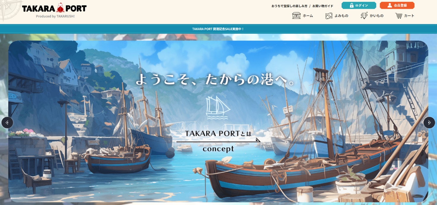 株式会社エートゥジェイ(本社:東京都港区、代表取締役社長:飯澤 満育/以下、エートゥジェイ)は、体験型コンテンツ「リアル宝探し」の企画・制作・運営を手がける株式会社タカラッシュ(本社:東京都品川区、代表取締役社⾧:齊藤 多可志/以下、タカラッシュ)の公式オンラインショップ「TAKARA PORT」に、当社が提供している販促・CRM機能一体型のクラウド型ECカートシステム「メルカート」が採用され11月30日(木)にオープンしたことをお知らせします。