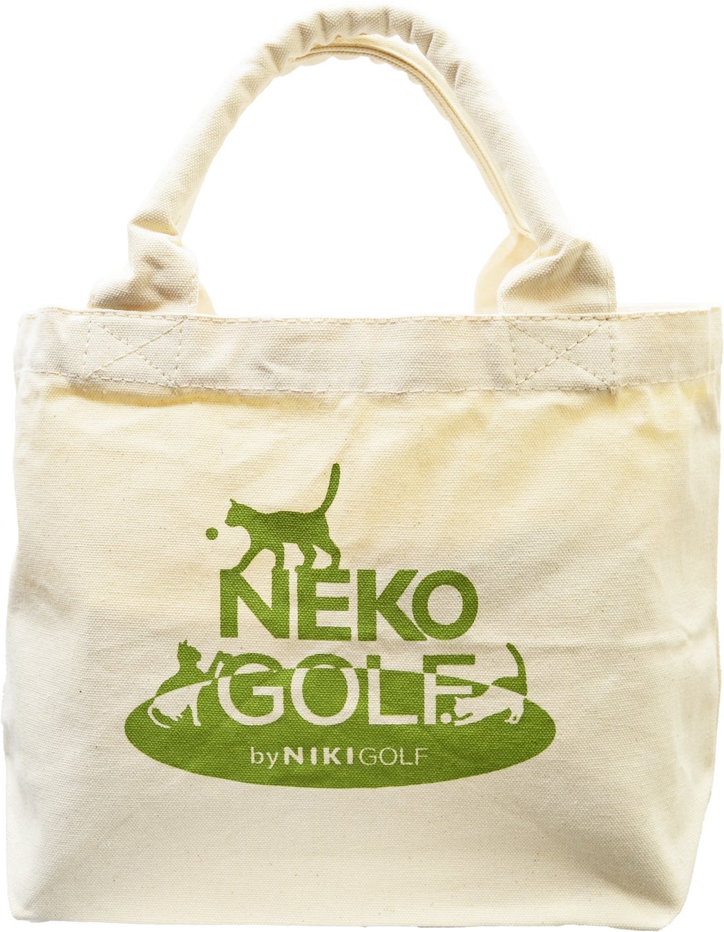 ゴルフの日、朝早く目を覚まして部屋の猫様に「行ってくるにゃ」と声をかけたり、ラウンド中に猫様の姿を見るとショットやパットの調子の良し悪しも忘れて幸せな気分になったり、ゴルフショップで何となく猫関連のグッズを探してしまったりする……そんな猫好きゴルファーの皆様に向けて、全社から猫好きスタッフを選定したプロジェクトを編成し、その意見をもとにデザインされたバッグは、ラウンドバッグとしてはやや余裕のあるW330×H200×D120のランチトートサイズ。