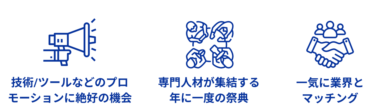企業・個人・業界団体・行政などが参画。海外からの登壇者や出展社もあり、国境を超えた盛り上がりを日本で実現します。