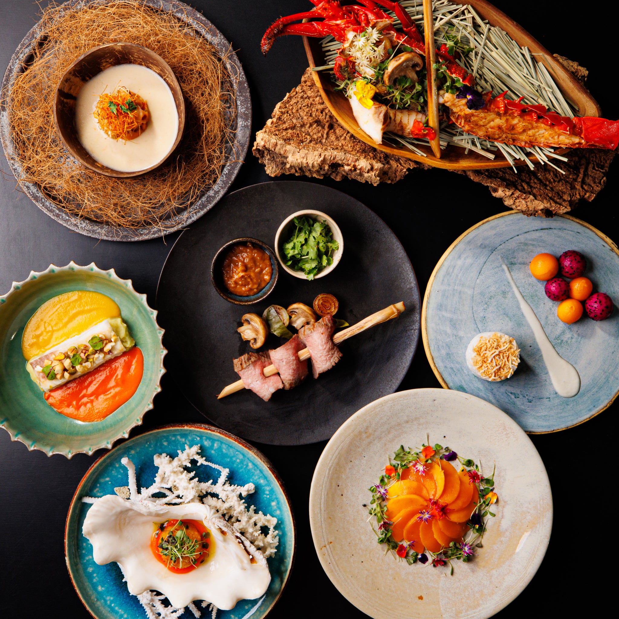 オーベルジュとして地産地消を目指し地元沖縄で収穫された食材をふんだんに使用しつつ、フレンチ懐石の技法を用いたその土地ならではのこだわりのイノベーティブ創作料理をご提供させていただきます。また、朝食では美味しいだけでなく目にも美しい食事を大きなトレーに入れ、プールに浮かべながら楽しむフローティングブレックファーストをご提供いたします。