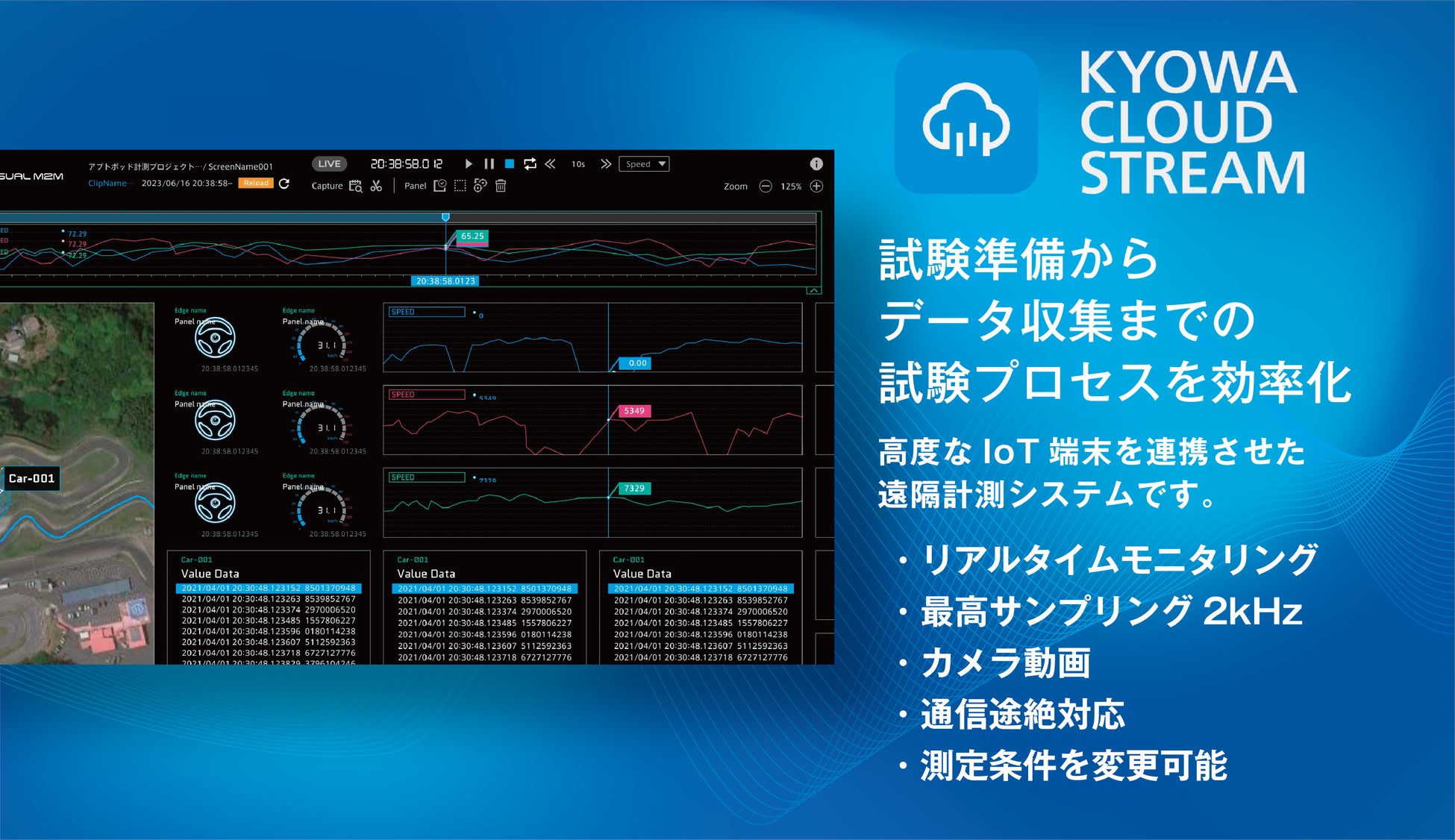 当社は今年4月より、計測業務をDX化するクラウドサービス「KYOWA CLOUD」の提供を開始しました。KYOWA CLOUDでは2つのサービス、「KYOWA CLOUD STREAM」と「KYOWA CLOUD FIELD」を展開しています。本展示会では「KYOWA CLOUD STREAM」を主にご紹介します。