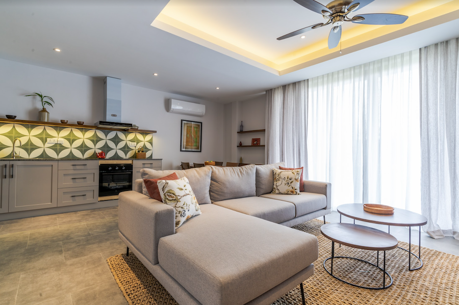 - 全住戸家具付。2022年12月末完成(2022年7月現在既に上棟し内装工事中)