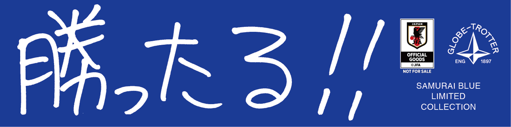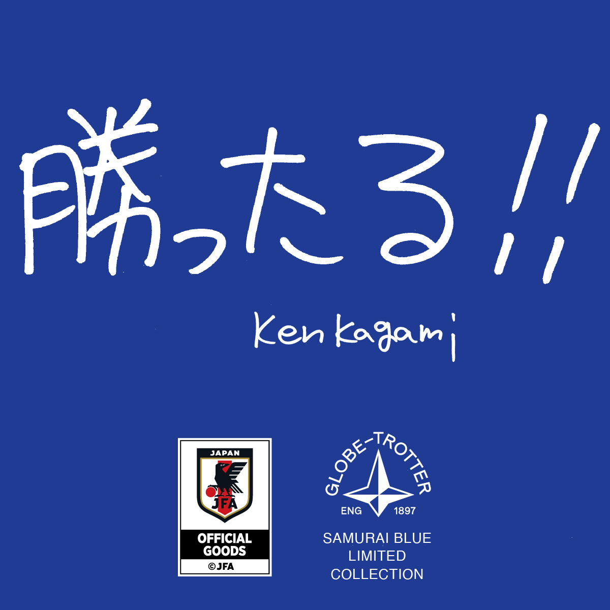 また、サッカー日本代表対ドイツ戦が行われる 11 月 23 日(水)より、グローブ・トロッター直営店舗にて、加賀美健氏がデザインした「勝ったる!!」ステッカーを、ご来店いただいたお客様に配布いたします。