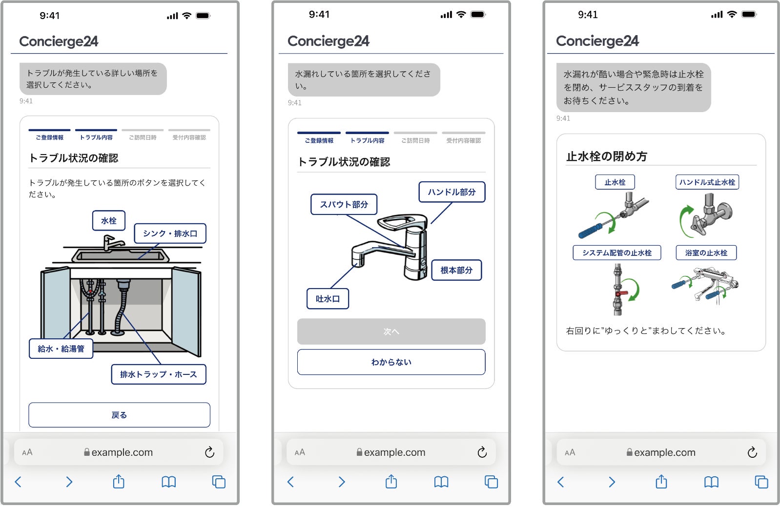②具体的な水漏れ箇所をイラスト上で選択