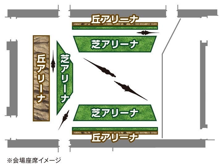 ※芝アリーナは芝生の上に座ってご覧いただくお席です。丘アリーナは、椅子やひな壇にお座り頂くお席です。