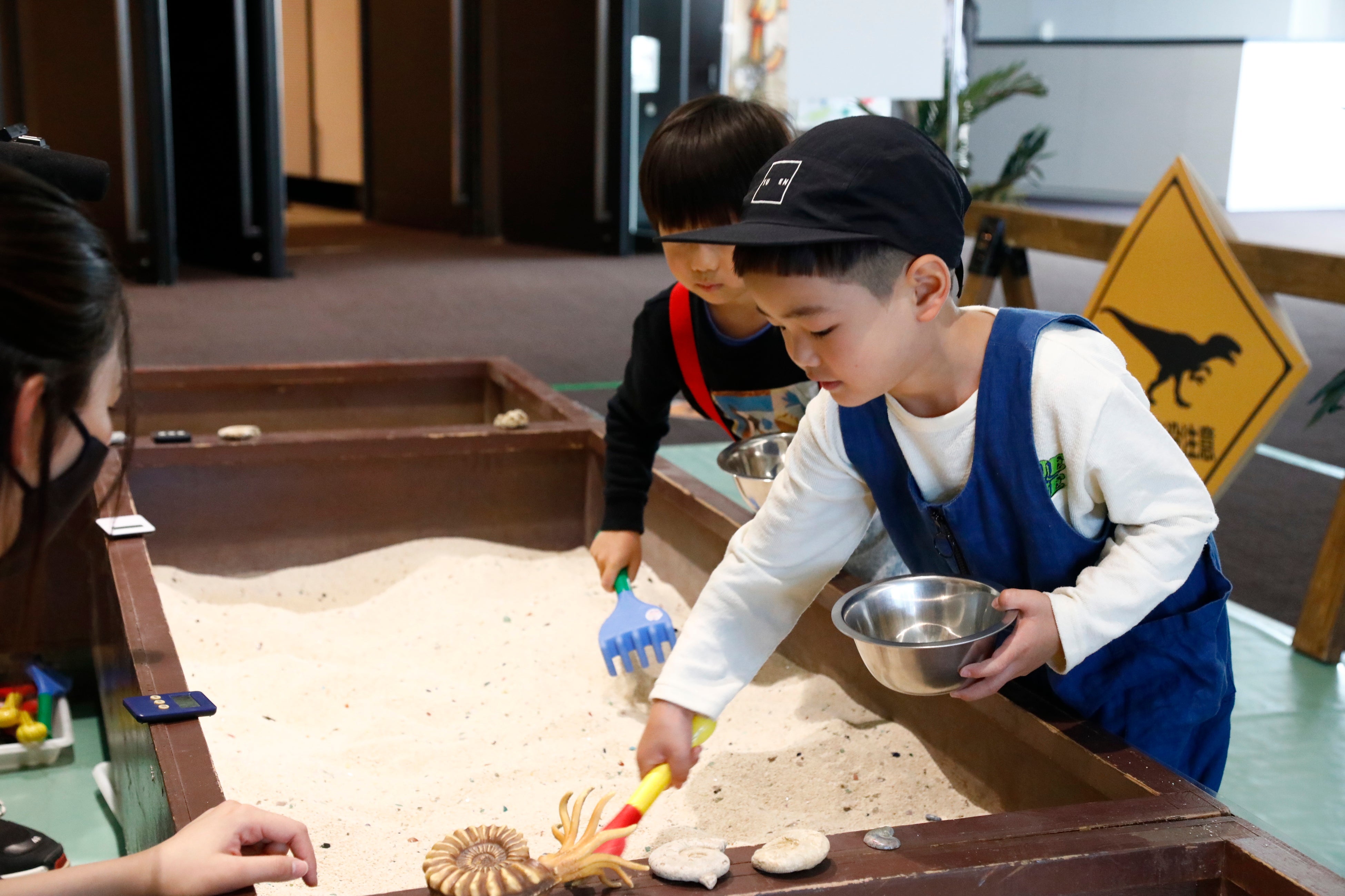 化石発掘体験、ヘンシン恐竜マスク作りなど6つのワークショップが楽しめるエリアとなっております。