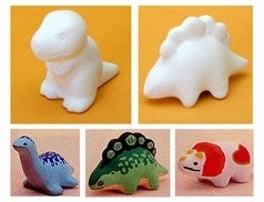 6種類の白い陶器製の恐竜から1体を選び、自由にペイントしてオリジナルの恐竜を作れます。