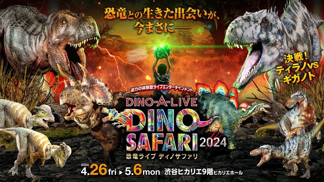 体験型「恐竜」ライブエンターテインメント「DINO SAFARI 2024」日程:2024年4月26日(金)~5月6日(月・振休)※全34公演場所:渋谷ヒカリエ9階ヒカリエホール