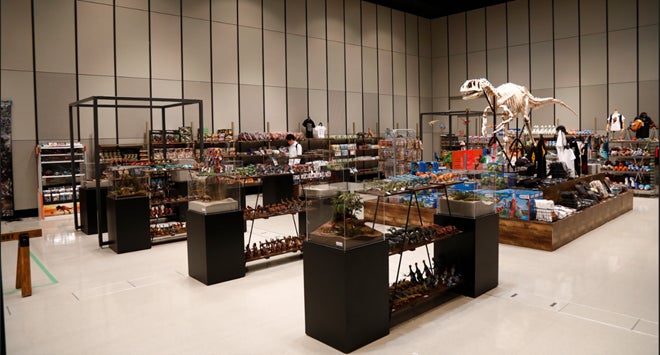 オリジナルグッズからフィギュアやステーショナリーやおもちゃに生活雑貨、そして本物の化石まで取り揃えた総アイテム約1000点の恐竜好きならワクワクが止まらないスペシャルショップとなっております。