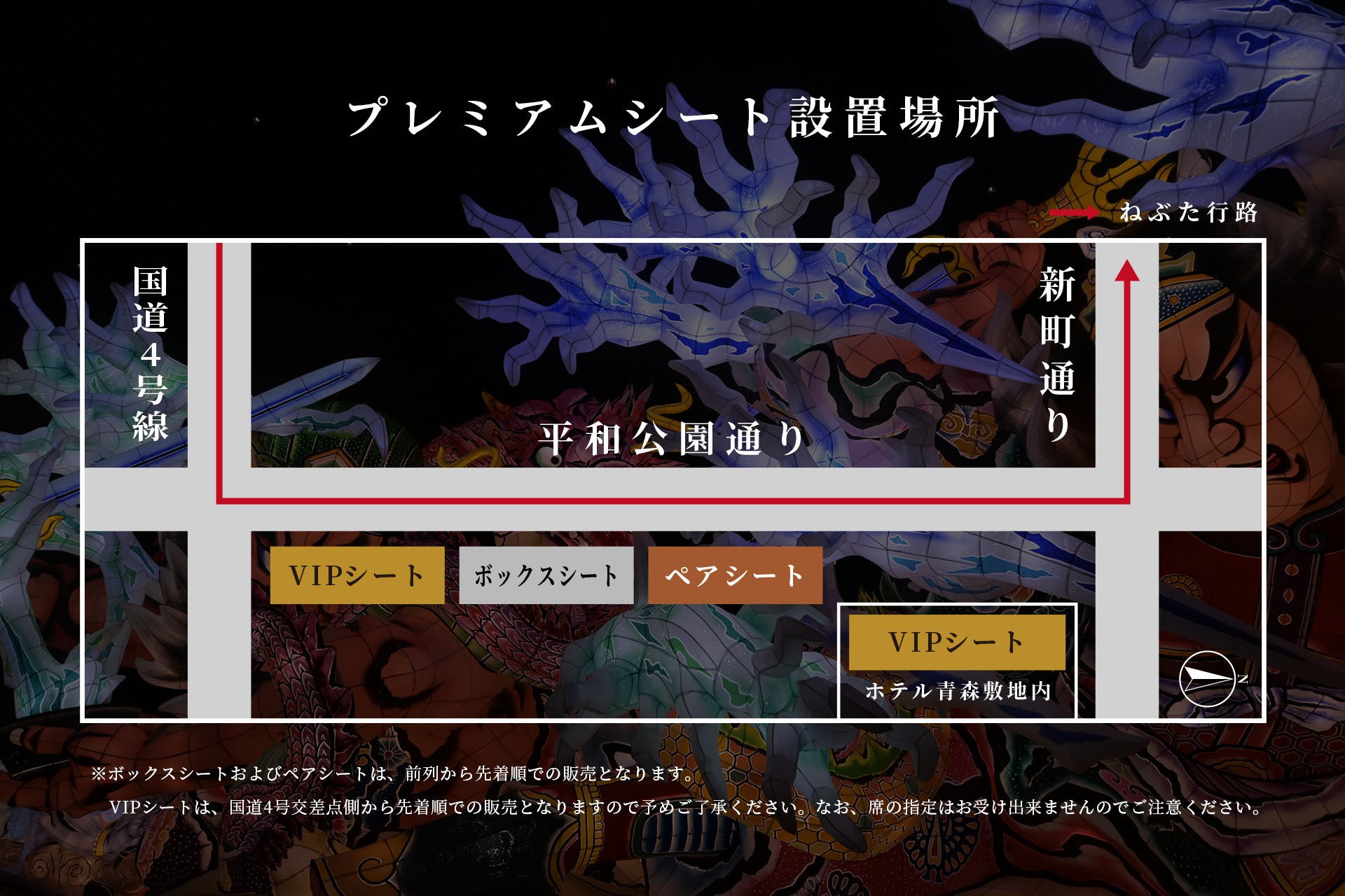 各シート、平和公園通り沿いへの設置となります。場所の詳細に関しましては、下記マップをご参照ください。また、お席へのご案内は販売先着順となり、お席の指定はお受けすることはできませんのでご了承ください。