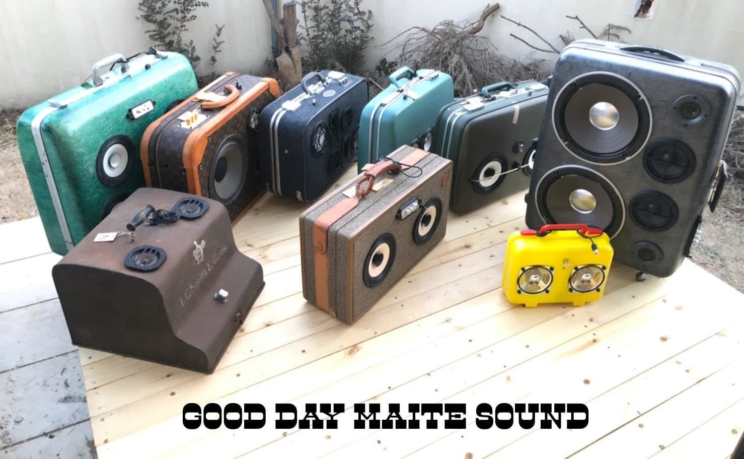時代に取り残され忘れ去られたジャンクたちをスピーカーとして甦らせるミッションを遂行する仲間たち。メンバーは@pardonkimura @washiokeisuke @rip_charm_kustomade_by_donald @akinorioyama。 今回は旅行に連れていってもらえなくなった時代遅れのトランク、ぬいぐるみ、廃棄される冷蔵庫、壊れた楽器たちを、ブルートゥースなど最新鋭のパーツでモダンに甦らせたスピーカーの視聴販売を行います。グッダイマイトは「いい日だよなあ、兄弟」という意味で、オーストラリアのこんにちは的な挨拶言葉。そんな感じで今回のイベントで楽しんでもらえればと思います。