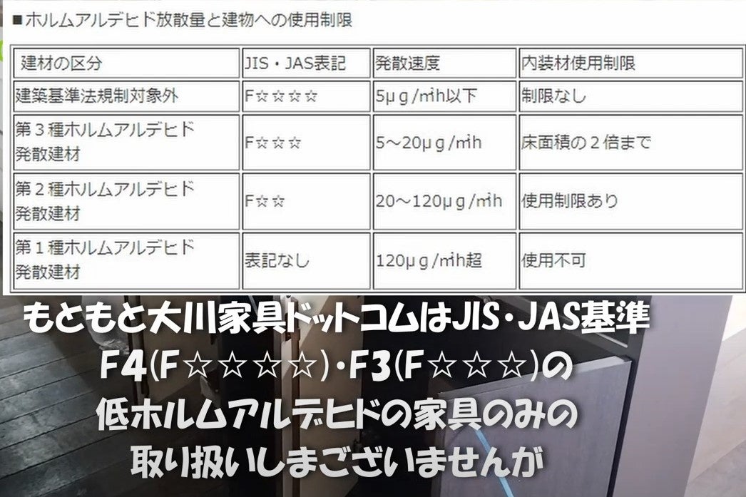 株式会社大川家具ドットコムは、シックハウス症候群の原因となるホルムアルデヒドに15年以上着目し、長年にわたり低ホルムアルデヒド建材のみを使用した家具のみを提供してきました。