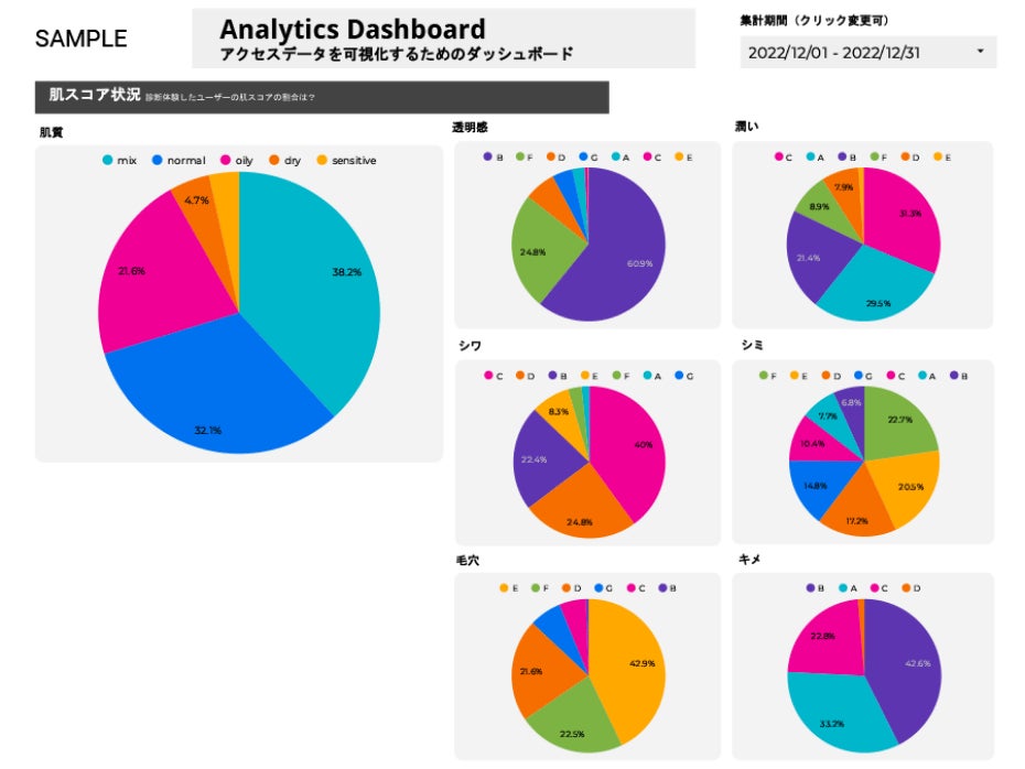 エンドユーザーの肌診断・カウンセリングの結果を分析し、一人ひとりに合った化粧品やスキンケアなどの商品を表示し、新商品のPRや売上アップに貢献します。