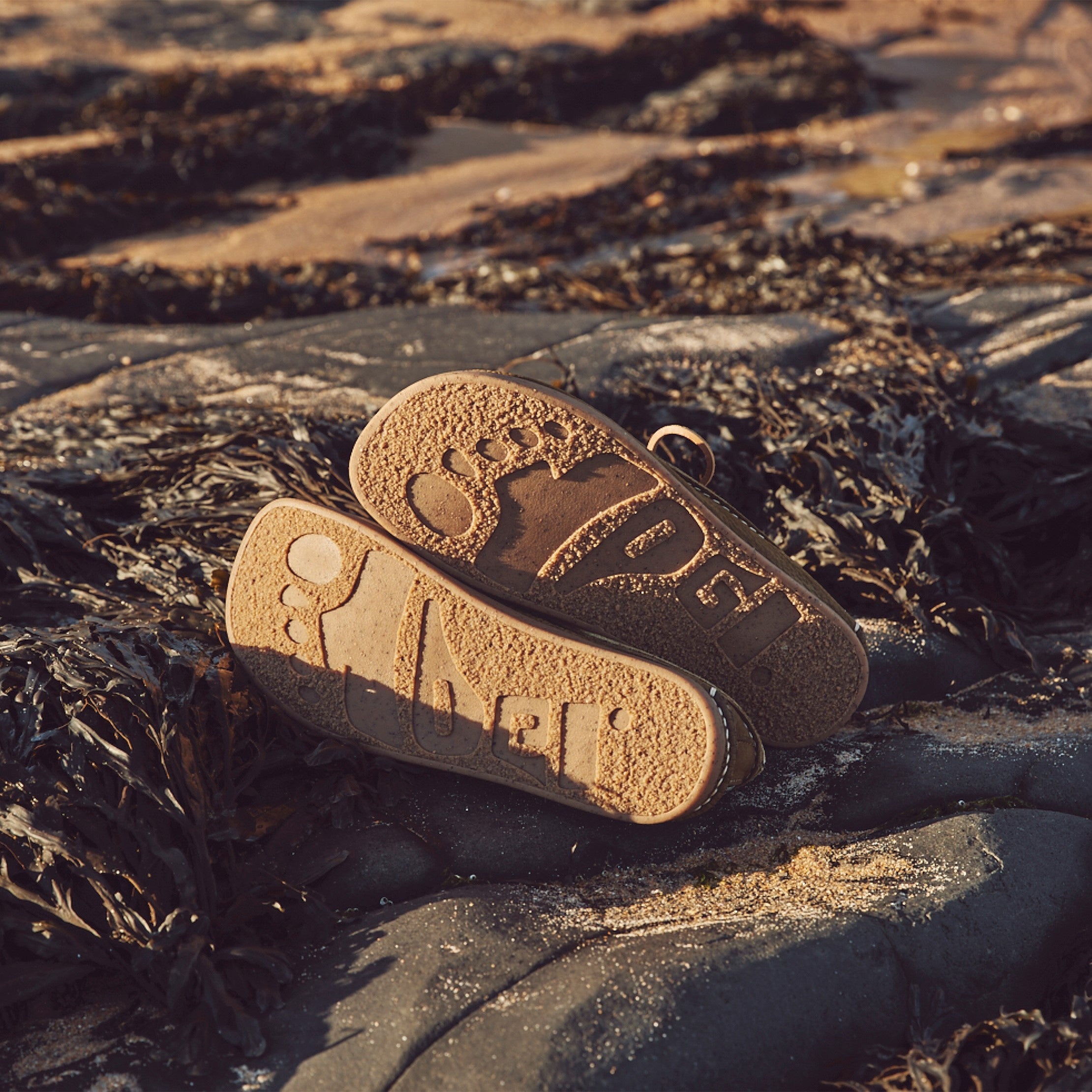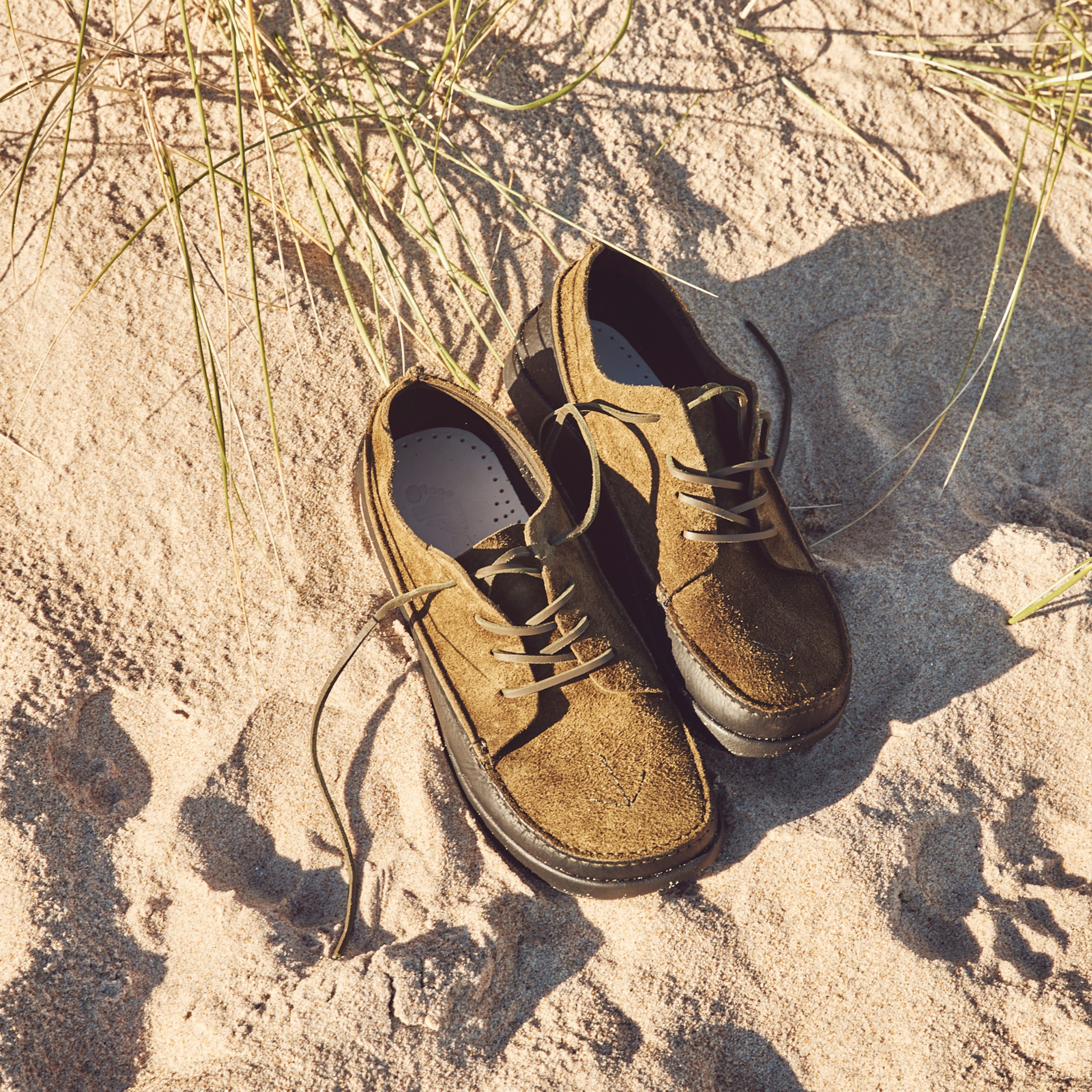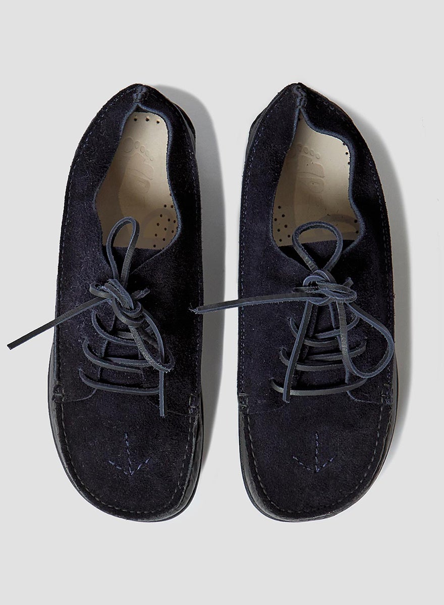 素材はレザーとスウェードを主に使用しており、ノルマンディー上陸艦隊を彷彿とさせるFINN II は、シティーユースやビーチでの着用に最適で、コラボレーションアイテムとして相応しいアイテムです。この熟考されたヨギーのデザインは、まるで砂に沈む足の形状のようでした。ヨギーとの協業では、ベジタブルタンニンのレザーやリサイクルのクレープソールを使用し、環境にも配慮した靴が出来上がりました。