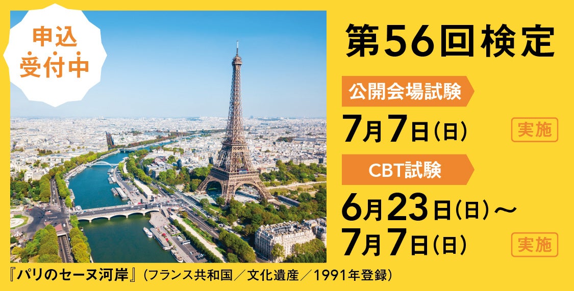 【公開会場試験】 2024年7⽉7⽇(⽇) 【CBT試験】 2024年6⽉23⽇(⽇)〜7⽉7⽇(⽇) ※マイスター、準1級は公開会場試験のみの実施 ※1級のCBT試験は7月7日(日)のみの実施 |