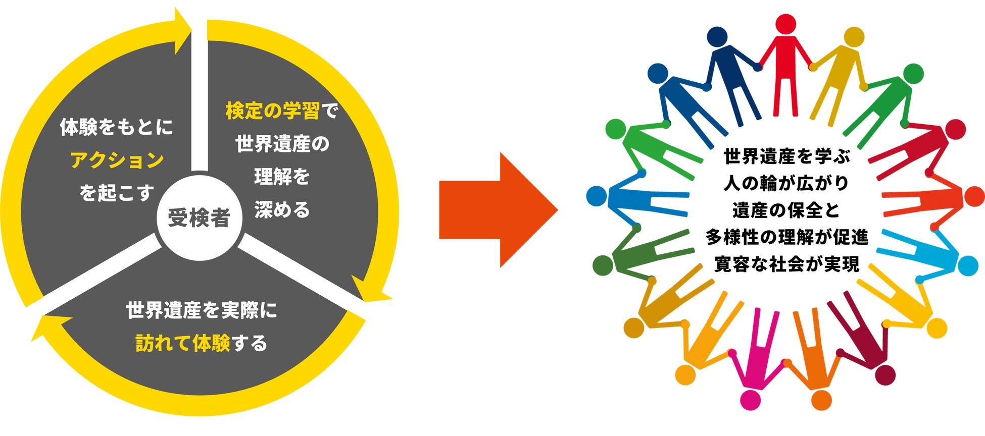 世界遺産検定のさらなる普及や、学校教育への世界遺産学習の導入、生涯学習としての世界遺産コンテンツの開発などを進め、学びを行動につなげることを目指します。