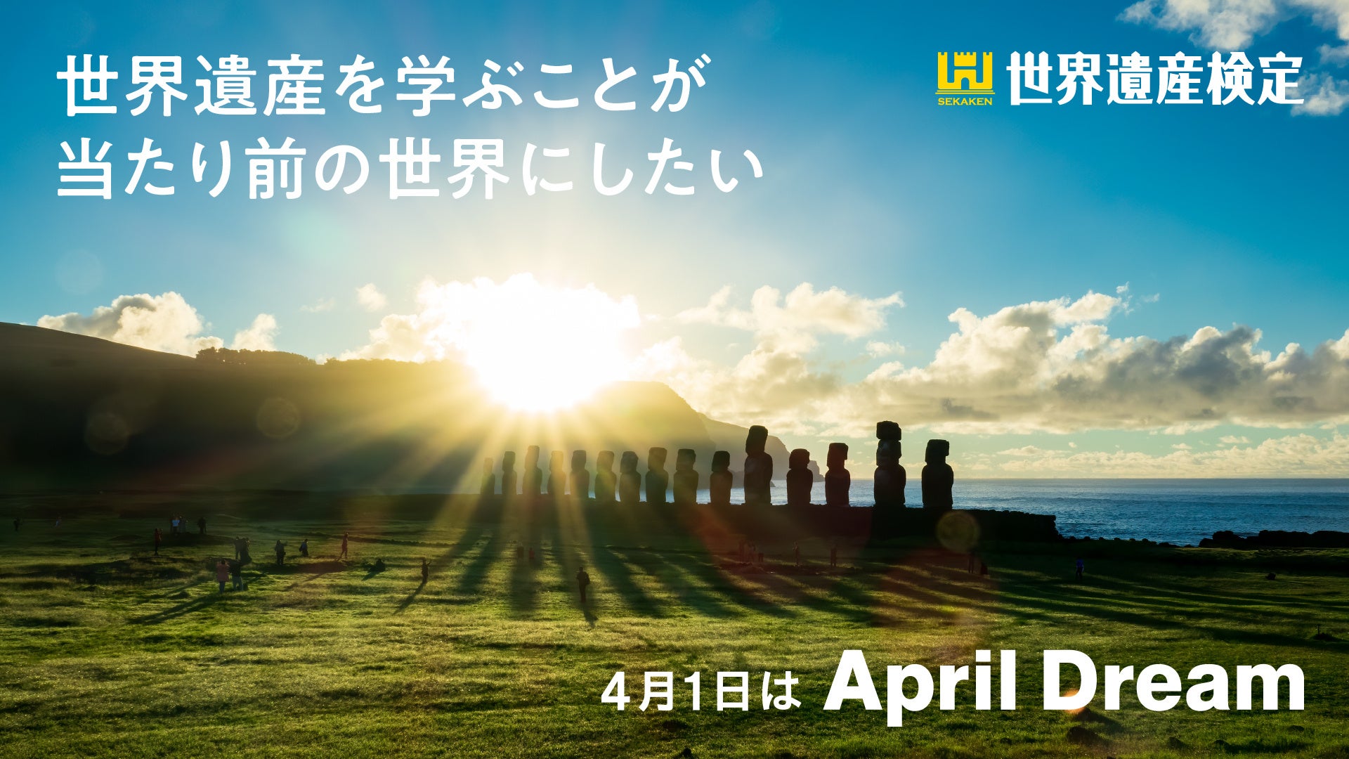 NPO法人世界遺産アカデミー/世界遺産検定事務局は、4月1日を夢を発信する日にしようとするApril Dreamに賛同しています。このプレスリリースは「NPO法人世界遺産アカデミー/世界遺産検定事務局」の夢です。