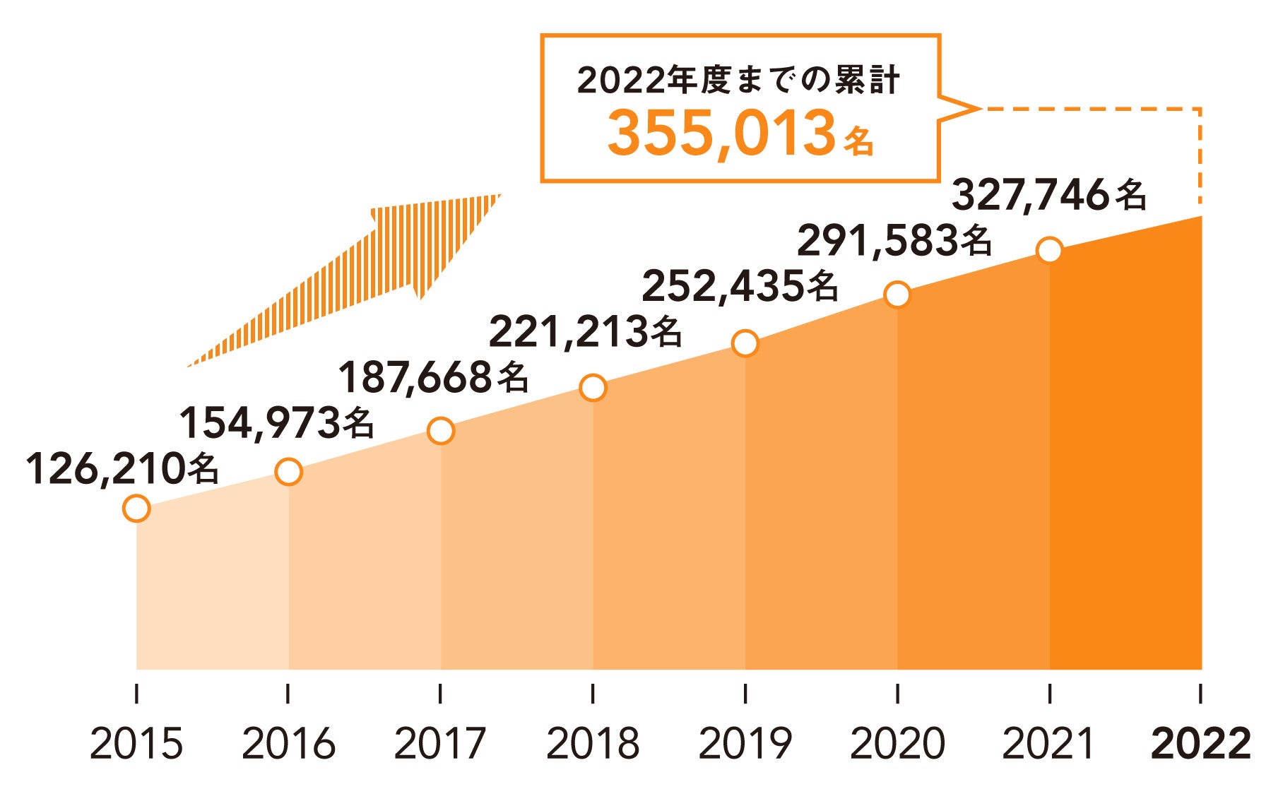 広く一般に対する啓発・広報に加え、教育現場での普及を促進するため、2014年からは文部科学省の後援を受けています。地道な活動の結果、2024年3月末までの累計受検者数は40万人近くとなりました。少しずつではありますが、社会での世界遺産学習の認知と実践は確実に広がりつつあります。この流れをさらに大きく確固たるものにすべく、世界遺産検定の一層の普及に取り組んでまいります。