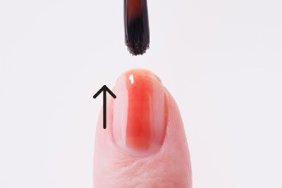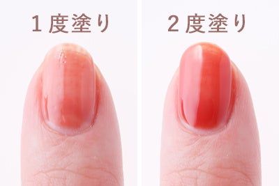 爪元の中央から爪先に向かって薄く塗り、左右も同じように塗ります。1度目は薄く塗ってください。