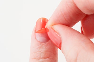 甘皮の方からジェルを優しくおこし、隙間をつくります。そのまま爪先に向かってジェルを丁寧にはがしていきます。