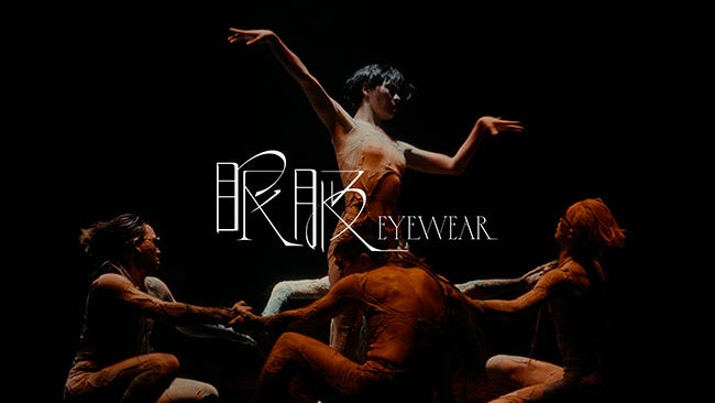 人が初めてアイウェアを着た瞬間をテーマにしたパフォーマンスは、旧約聖書をモチーフにしています。人類の原点である存在が、EYEVAN 7285,10 eyevan, Eyevol, E5 eyevanのプロダクトを纏った蛇たちにいざなわれ、EYEVANのサングラスを手にし、装い、魅せること、見ることに出会う様を深紅の舞台で身体表現しました。
