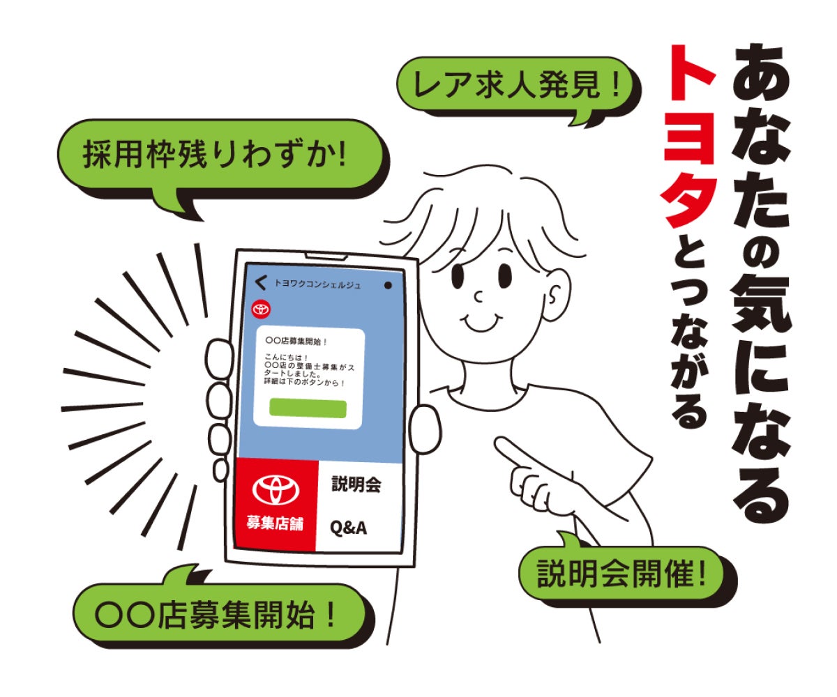 トヨタ自動車株式会社、株式会社アプティは協同で、トヨタディーラー専門自動車整備士求人サイト「トヨワク」を開発、23年11月のサイトオープンに先駆け、トヨワクが自動車整備士の事前登録を開始