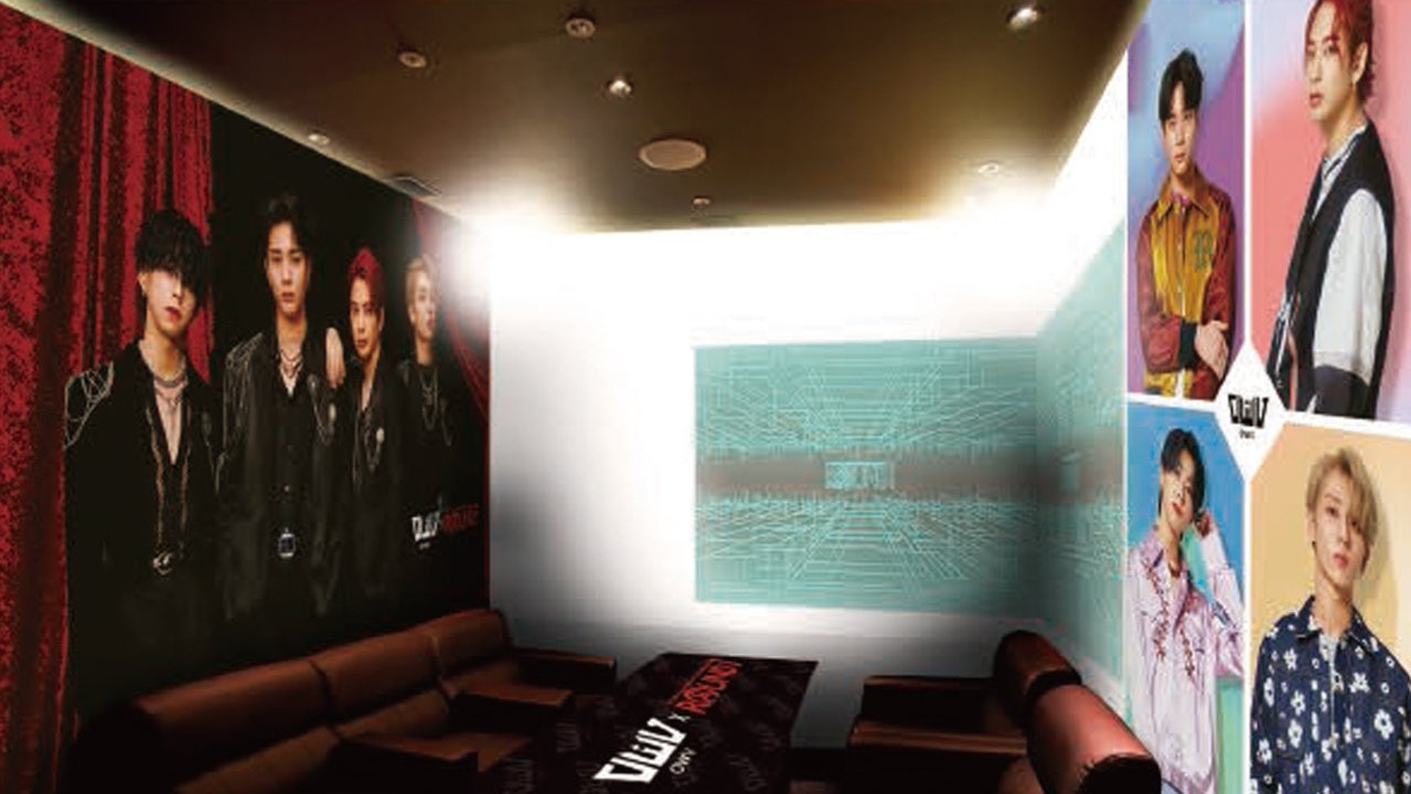 壁面、テーブル等がOWV仕様のスペシャルルームとなります。コラボルーム限定の特典映像も鑑賞できます。