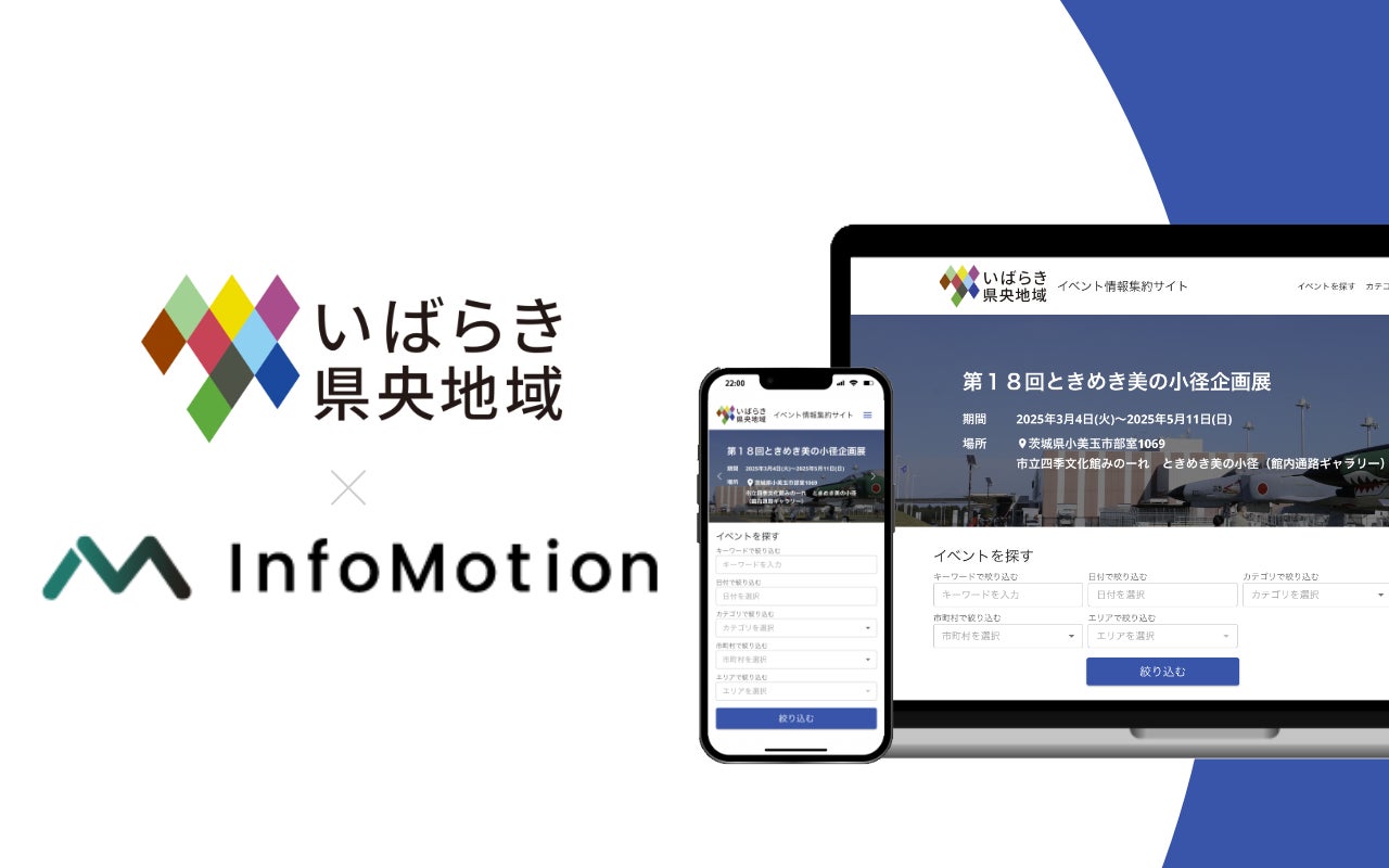 株式会社インフォモーション(本社:東京都品川区、代表取締役:矢野 祐輔、以下 当社)は2025年4月1日(火)、いばらき県央地域9市町村(水戸市,笠間市,ひたちなか市,那珂市,小美玉市,茨城町,大洗町,城里町,東海村。以下 9市町村)が、AIによる自動情報収集プログラムを用いたAIイベント情報集約サービス「いばらき県央地域イベント情報集約サイト」を導入したことをお知らせいたします。
