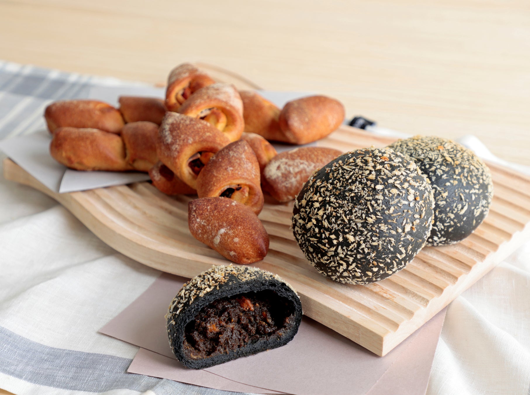 Minotteが竹炭の真っ黒カレーパンとバジル香るトマトエピを発売