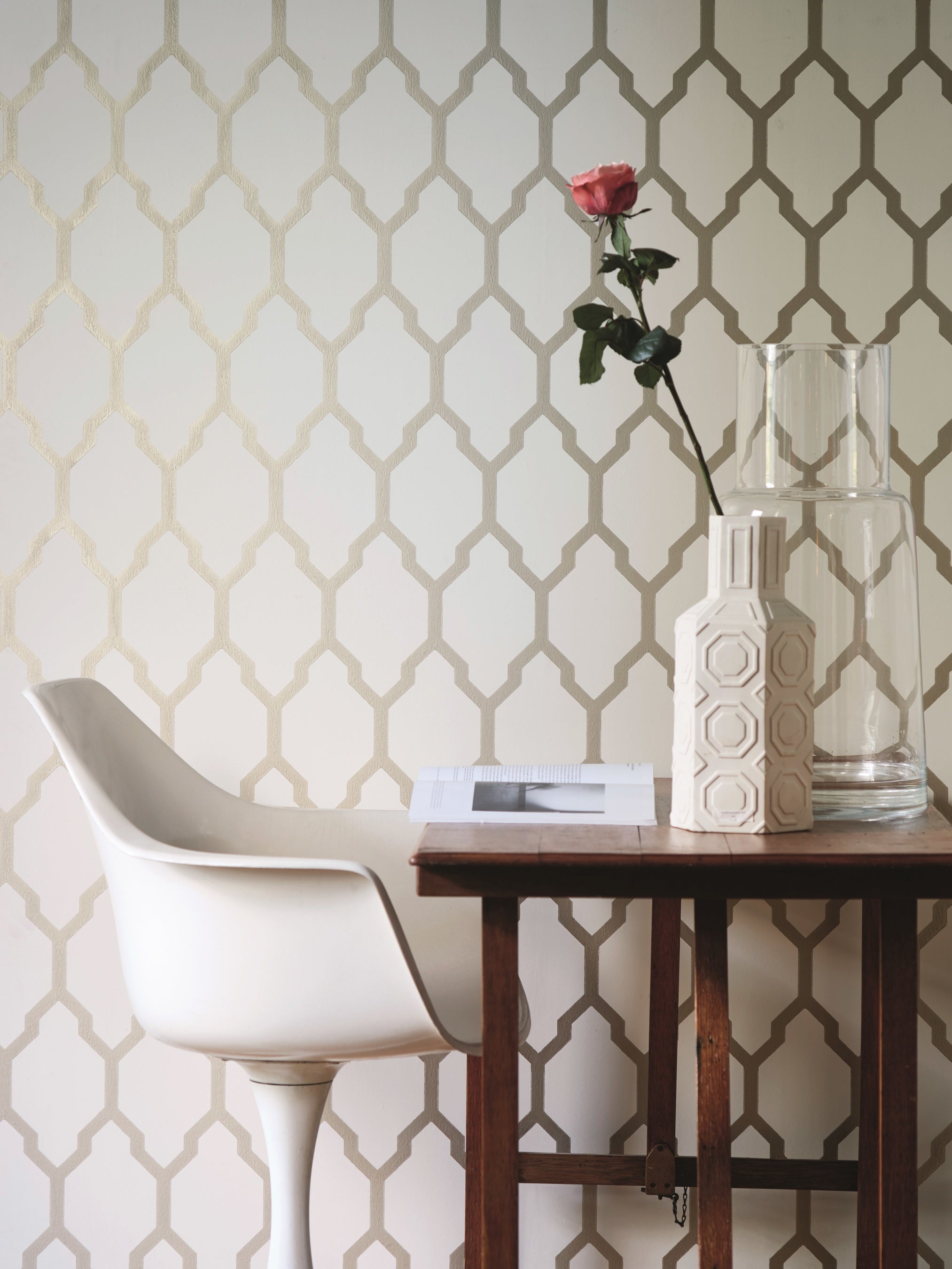 壁紙に独特の質感を作り出すベースカラーは、手作業によるブラシの技法を用いており、その上にさらに際立った