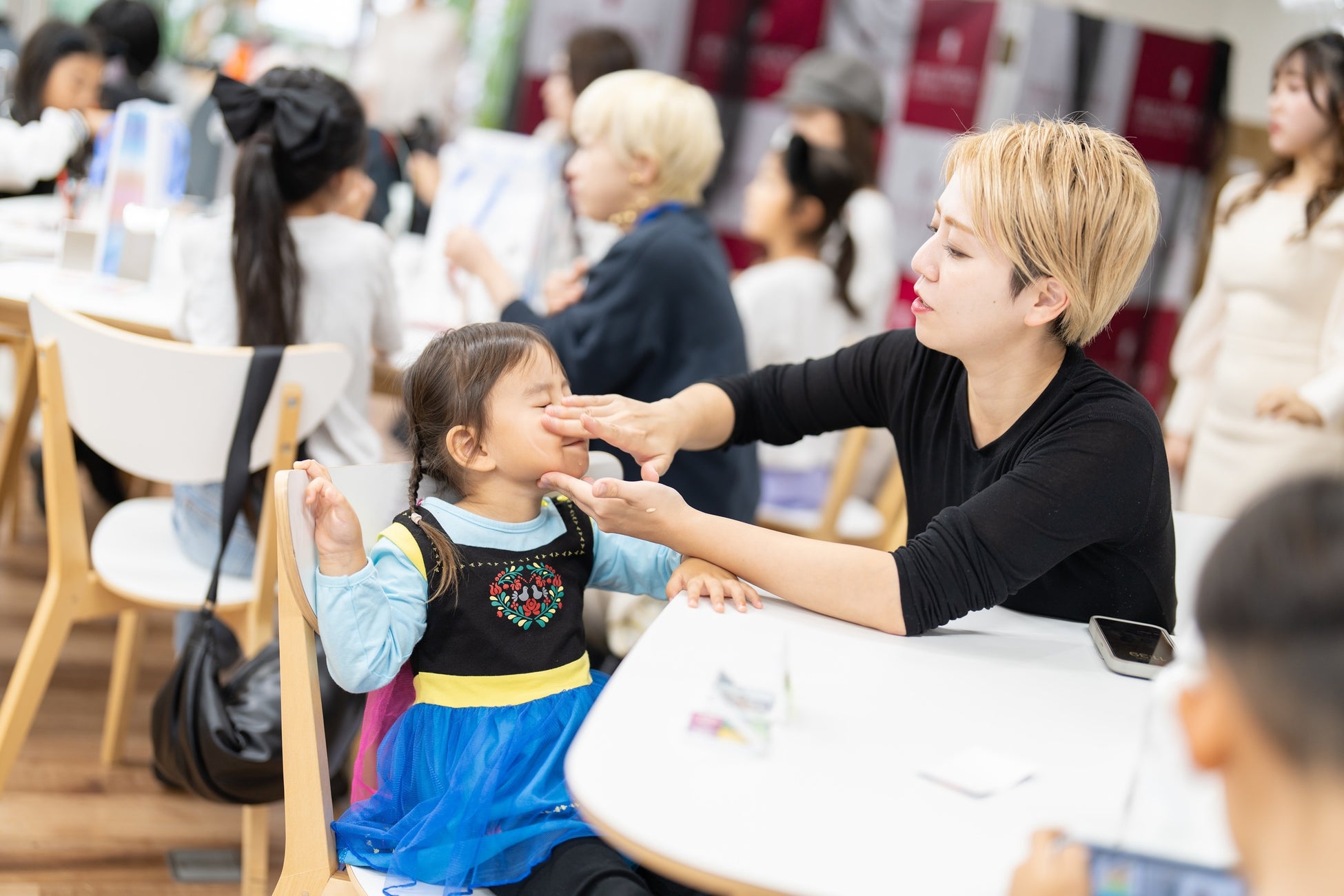当日は、ハロウィンムードで盛り上がる日曜日ということもあり、仮装した子どもたちとお母様方、31名が集結。アヴァンセのコスメを使用したメイクを楽しむとともに、プロのメイクアップアーティストによる「ネコメイク」や「傷メイク」など、ハロウィンにぴったりなメイクのレクチャーも行われました。参加者たちは仮装に合わせたメイクを学びながら、親子でハロウィンのひとときを満喫されました。